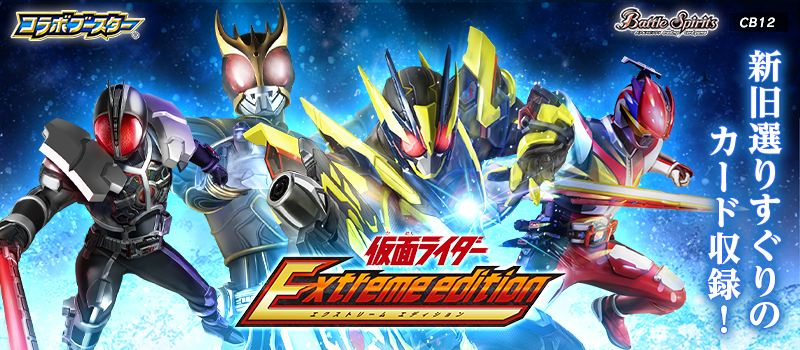 CB12, entitled Collaboration Booster: Kamen Rider Extreme Edition (コラボブースター 仮面ライダー CB12 was released in Japan on March 28th 2020. This set included Spirit, Brave, Magic, and Nexus cards in all six colors. It included a total of 71 cards: 30 Commons, 24 Rares, 8 Master Rares, 8 X-Rares and 1 XX-Rares + 5 Campaign cards. | |||